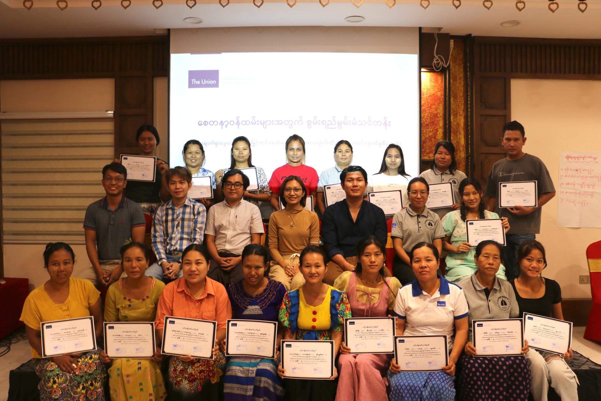 In 2024, the International Union Against Tuberculosis and Lung Disease (The Union) expanded its training program to promote gender equality, foster social inclusion, and address gender-based violence (GBV) in Myanmar. Recognizing UNOPS ARHC’s commitment to ending GBV and promoting Protection from Sexual Exploitation, Abuse, and Harassment (PSEAH), The Union developed these new sessions to give community volunteers essential skills to address gender equality and combat gender-based violence (GBV) while strengthening TB and Drug-resistant TB (DR-TB) efforts in their project communities. This year, more than 400 community volunteers across the country completed the GESI and GBV training.
