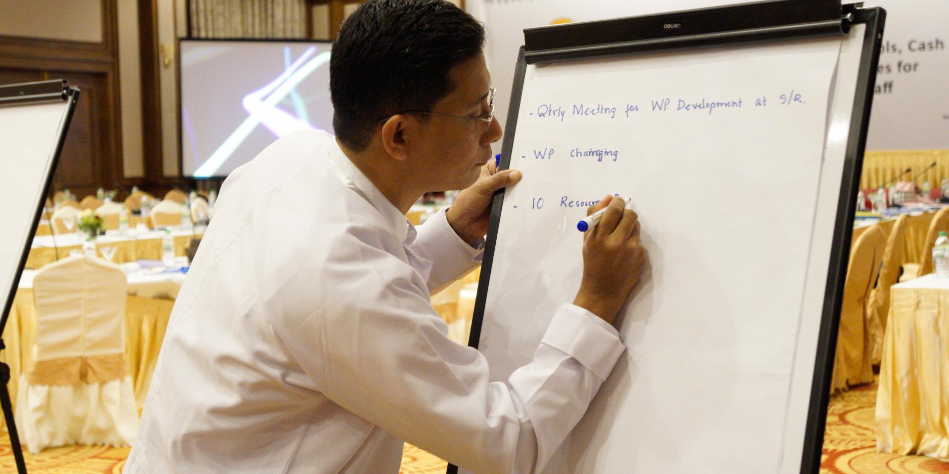 To decide the participants for the current training, we reviewed the list of health staff who had already participated and gave priority to those who had not already done it, such as the newly inducted staff and those involved with fund management, for example financial clerks. Participants included State/Region, district/township public health officers and AIDS, TB and malaria national programme officers. Government accountants and financial personnel are already familiar with the government rules and regulations, but they should also know the Managed Cash Flow SOPs developed in collaboration with UNOPS, and so we also included them.